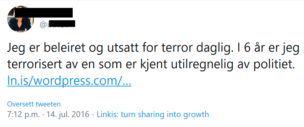 En selvfølge, vil mange si. Men i praksis ser vi hvordan denne likheten blir snudd på hodet. Kvinnen fortsetter sine publiseringer om meg, mens jeg blir ilagt stadig nye besøksforbud – også og særlig når det er hun som bryter dem.